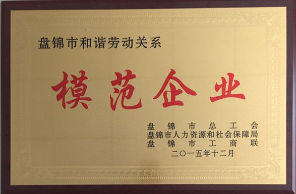• 恭贺我司荣获2015年盘锦市和谐劳动关系模范企业