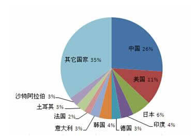2013年全球电线电缆产值占比 单位:%