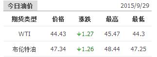 2015年9月29日国际原油价格表