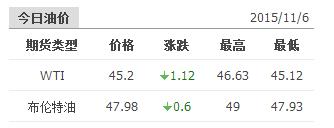 2015年11月06日国际原油价格表