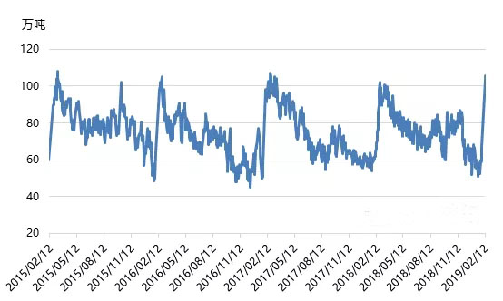 据相关统计数据分析,截至2月12日,聚烯烃石化库存增至105.5万吨,较节前最后一个工作日增加57.46%。